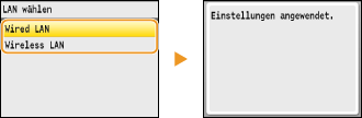 Wählen Sie <Wired/Wireless LAN wählen>, und drücken Sie .