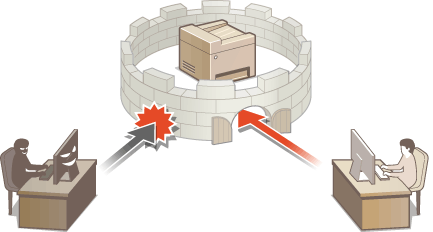 Sie können verhindern, dass unbefugte Dritte auf das Gerät zugreifen und es verwenden. Dazu stehen verschiedene Sicherheitsmaßnahmen zur Verfügung, wie das Verwalten der Zugriffsrechte der Anwender, die Verwendung von Firewalls und das Ändern von Portnummern.