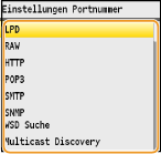 Ports fungieren als Endpunkte für die Kommunikation mit anderen Geräten. Üblicherweise werden für die wichtigsten Protokolle standardisierte Portnummern verwendet, aber Geräte, die diese Portnummern verwenden, sind anfällig für Angriffe, weil diese Portnummern allgemein bekannt sind. Zum Verbessern der Sicherheit kann Ihr Netzwerkadministrator die Portnummern ändern. Nachdem eine Portnummer geändert wurde, müssen Sie den Kommunikationsgeräten wie Computern und Servern die neue Nummer mitteilen. Legen Sie die Einstellungen für die Portnummern je nach Netzwerkumgebung fest.