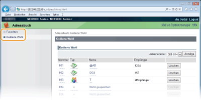 Speichern des Adressbuchs über Remote UI (nur MF8580Cdw / MF8550Cdn / MF8540Cdn / MF8280Cw)